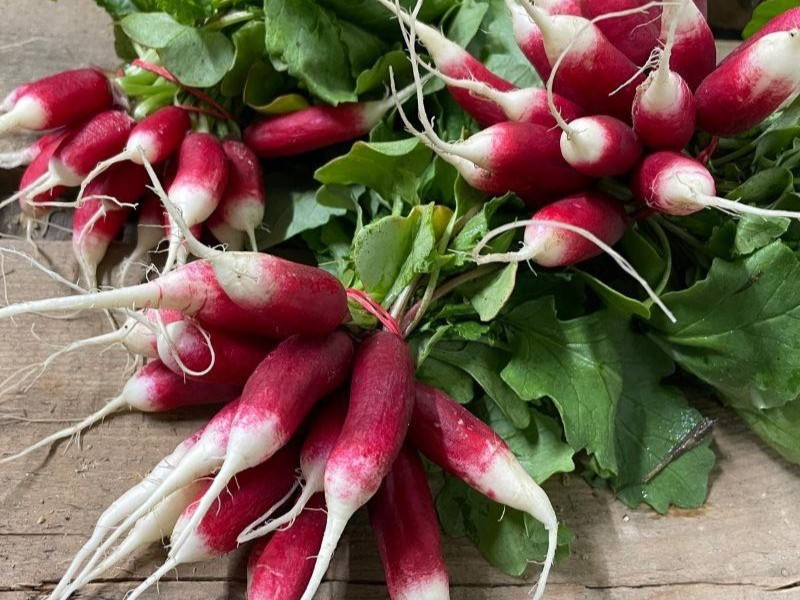Unser halblanges französisches Radieschen mit weißer Spitze ist zart-würzig und sehr dekorativ. Sie sehen nicht nur schön aus: Der leicht scharfe Geschmack der Radieschen kommt von den enthaltenen Senfölen, die als gesund und stärkend geltend. Hier bestellen.